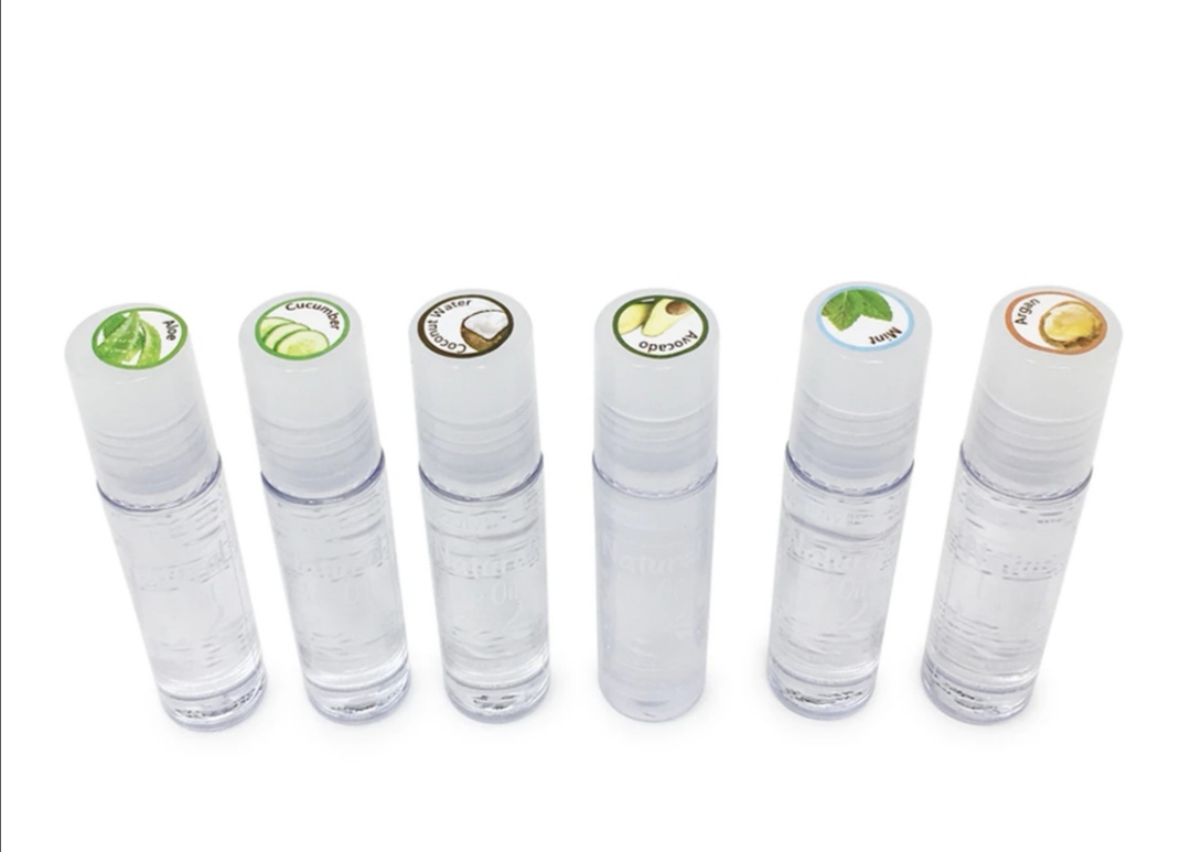 Différentes huiles : Aloé vera, Concombre, Noix de coco, Avocat, Menthe, Argan