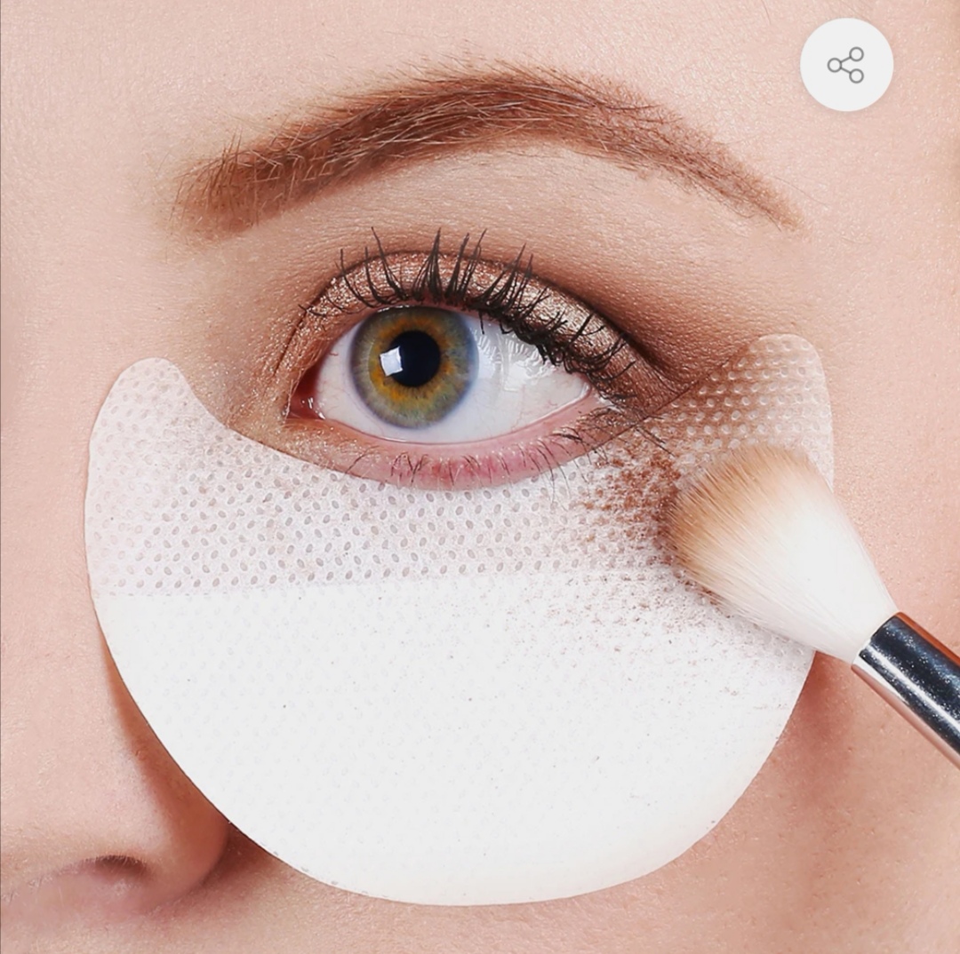 Patch auto-adhésif qui est placé sous les yeux avant de se maquiller pour attraper les retombées de fard à paupières et obtenir une application de maquillage sans bavures et dans défaut.